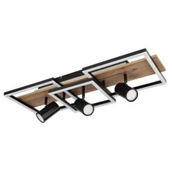 LED Deckenstrahler, Metall Holz, Schwarz, 3-flammig, L 72 Cm