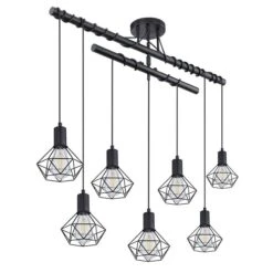 Hängeleuchte, Käfig Design, Schwarz-matt, Hanfseil, H 120 Cm