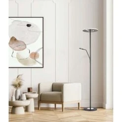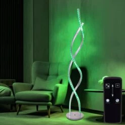 LED Stehlampe, Säule, Metall Holz, Schwarz, Dimmbar; H 123cm