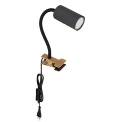 Klemmleuchte, Graphit, Holzoptik, Schwarz, Flexibler Arm, H 41,5 Cm
