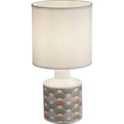 Textil Tischleuchte, Keramik, Weiß, Multicolor, H 28 Cm, SIULA