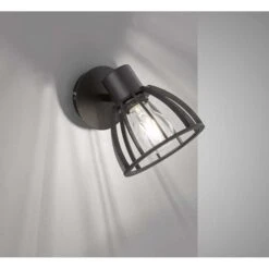 Wandleuchte, Leinen Grau, Schwarz, Gelenke Beweglich, L 80cm