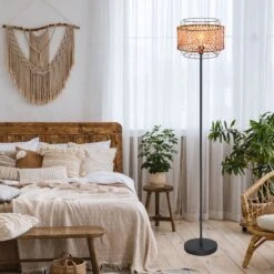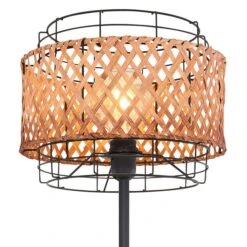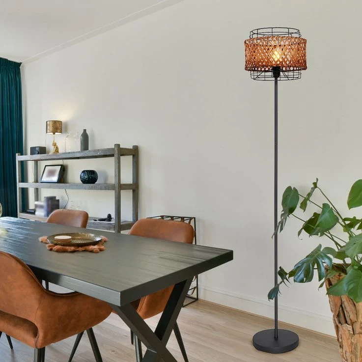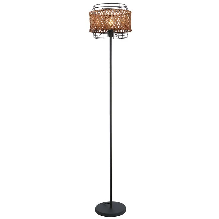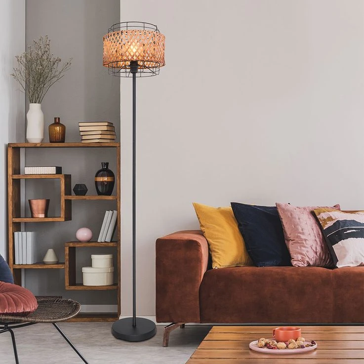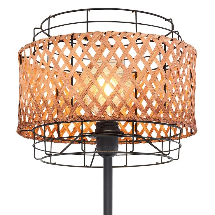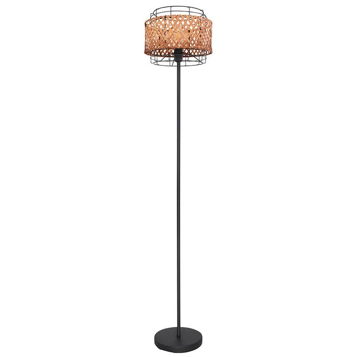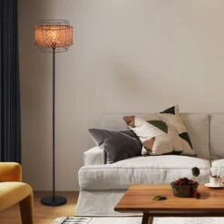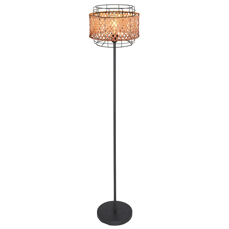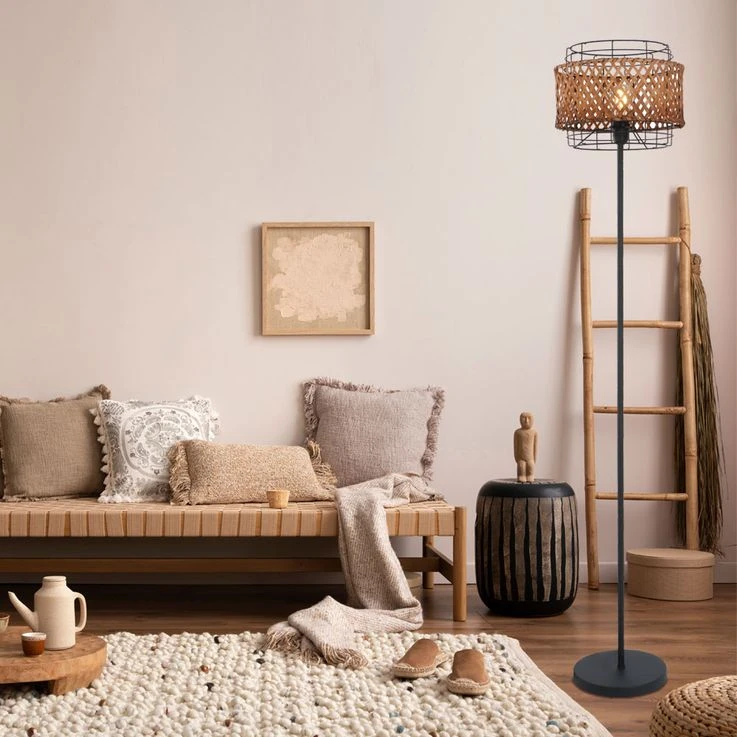 Boho Stehlampe, Käfig, Bambusgeflecht, Schwarz, H 151 Cm