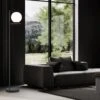 - MATERIAL/FARBE: Die 151 cm große Stehleuchte besteht aus einem runden, schwarzen Metallsockel, an dem ein schwarzer Metallstab fixiert ist.