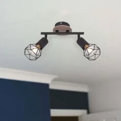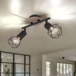- MATERIAL/ FARBE: Die Deckenleuchte ist aus schwarz mattem Metall gefertigt. Die zwei Spots verfügen über runde und gitterförmige Schirme, so dass jeder Raum optimal ausgeleuchtet werden kann.