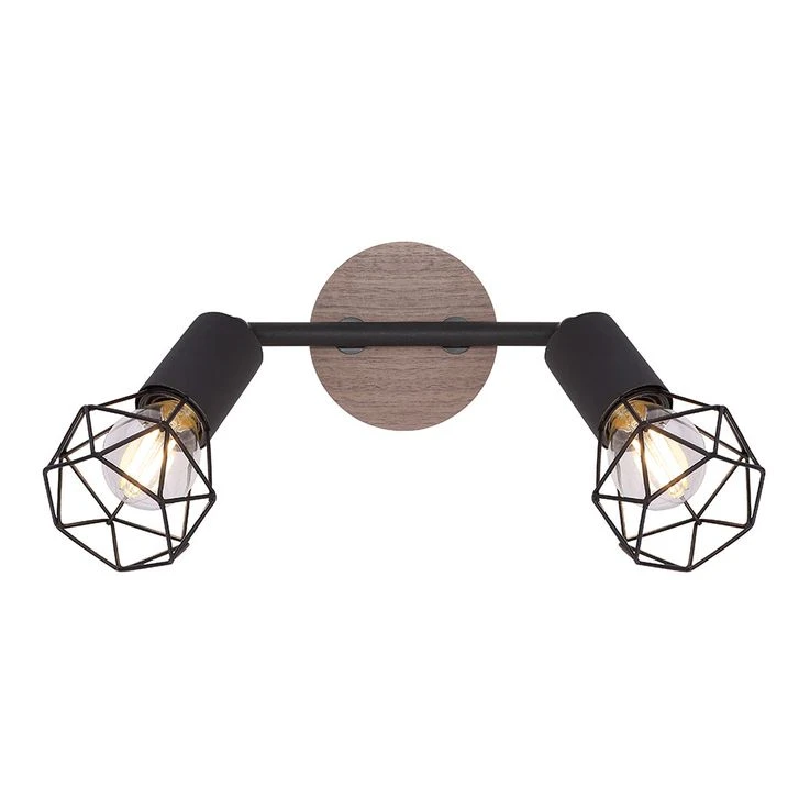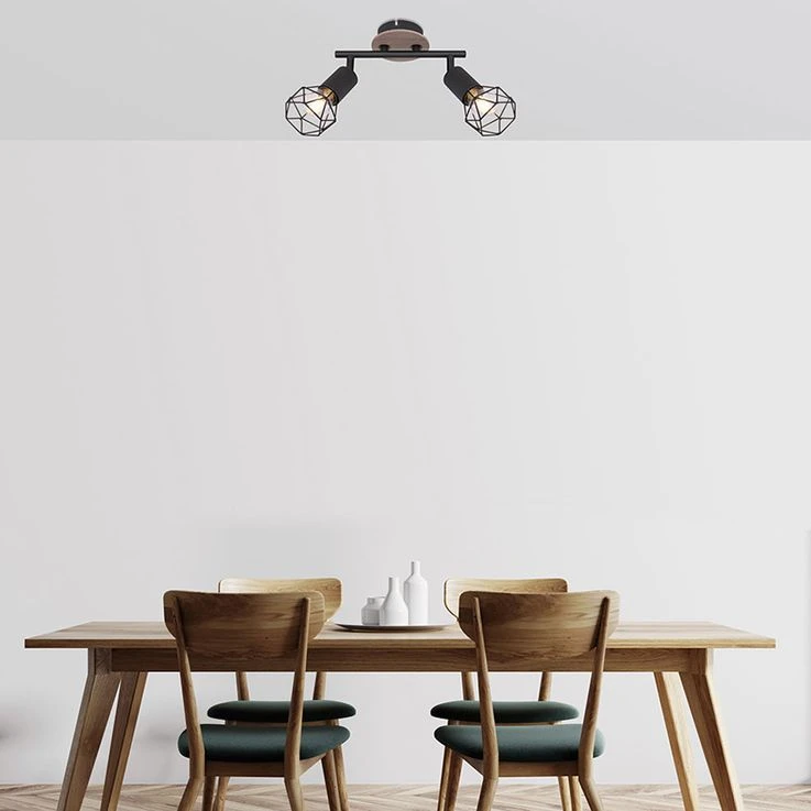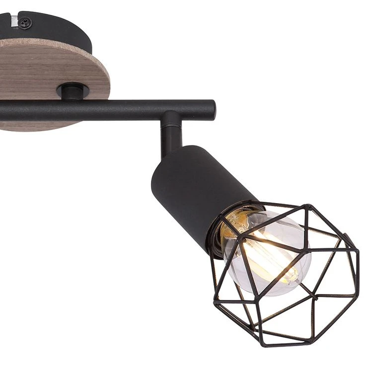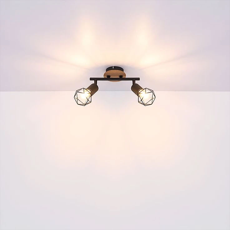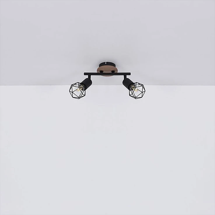 Deckenlampe, 2flammig, Metall Holz, Schwarz, Spots Beweglich