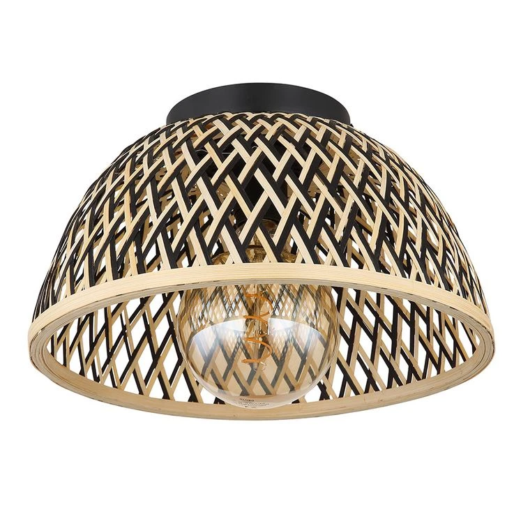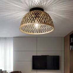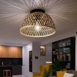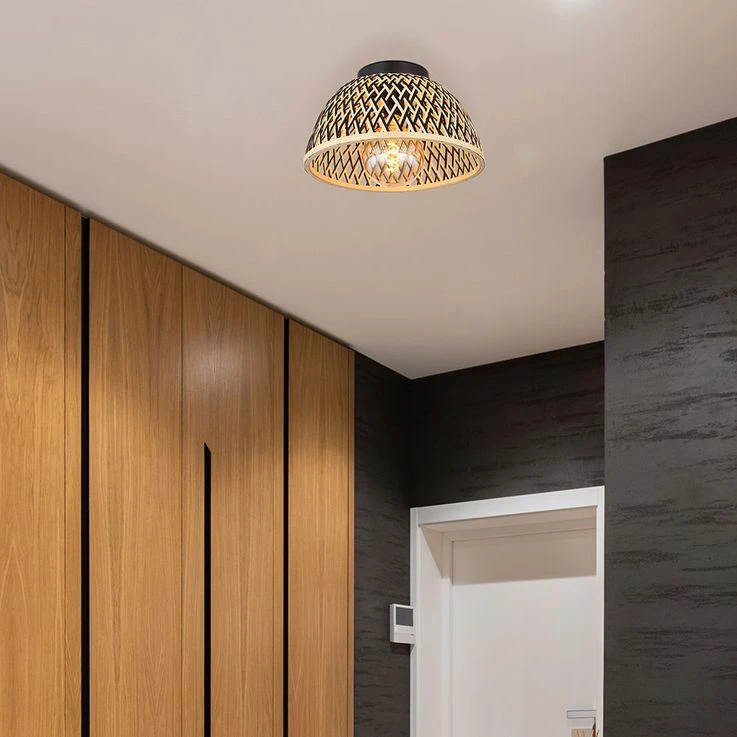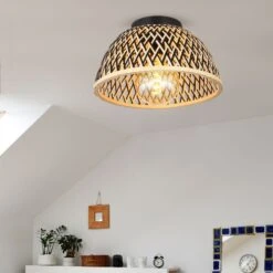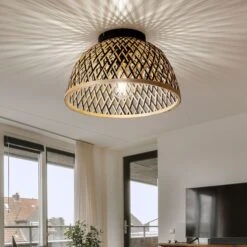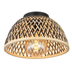 Deckenlampe, Metall Bambus Schirm, Schwarz Braun, D 35 Cm