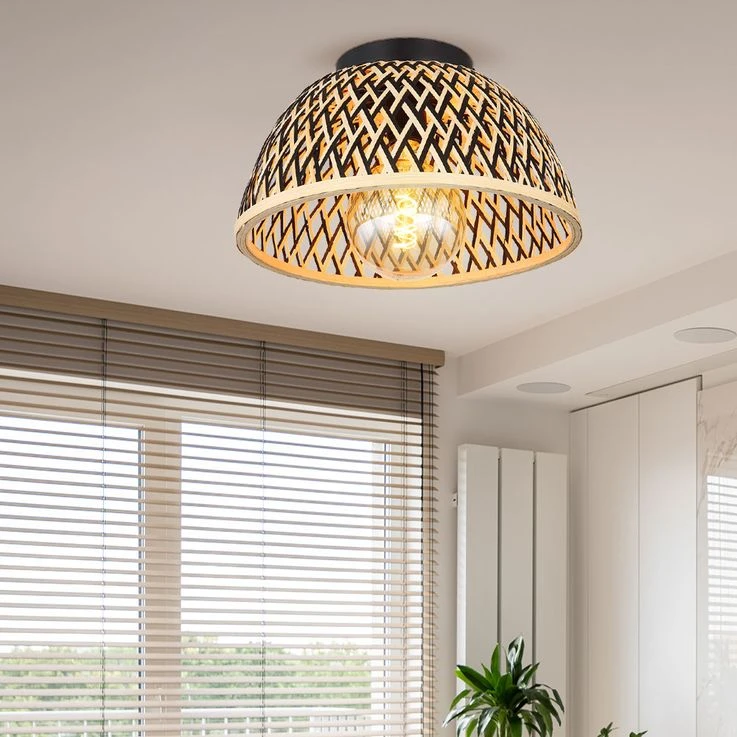 - DESIGN: Eine Innenleuchte die durch ihr romantisches Erscheinungsbild im Boho Stil jeden Wohnraum aufwertet. Der Schirm aus geflochtenem Bambus ist ein echter Hingucker.