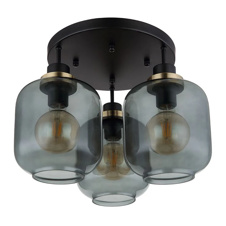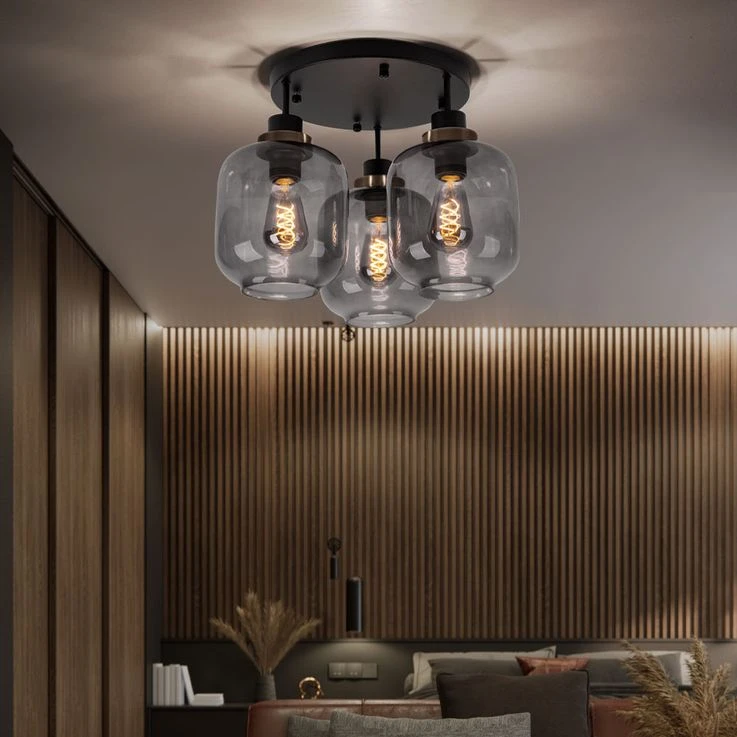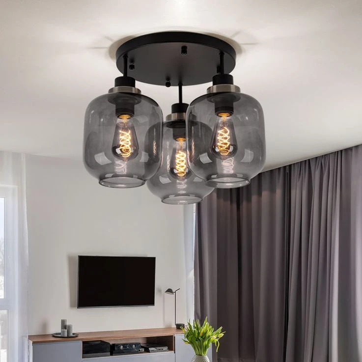 Deckenlampe, Metall Glasschirm, Schwarz Matt Rauch, 3x E27