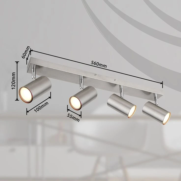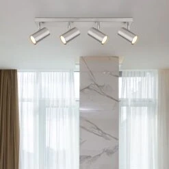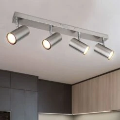Deckenleuchte, 4-Flammig, Nickel, Spots Beweglich, L 56 Cm
