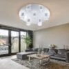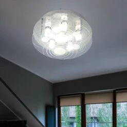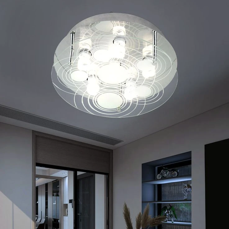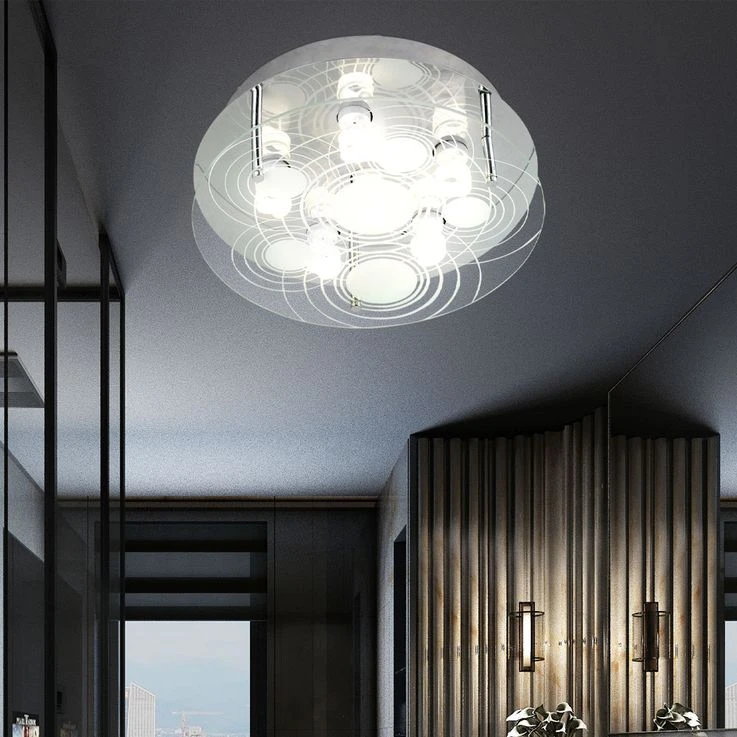 Deckenleuchte, 6-Flammig, Glas Satiniert, D 33 Cm