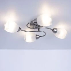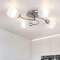 Deckenleuchte, Chrom, Glas Satiniert, Geschwungen, L 54 Cm