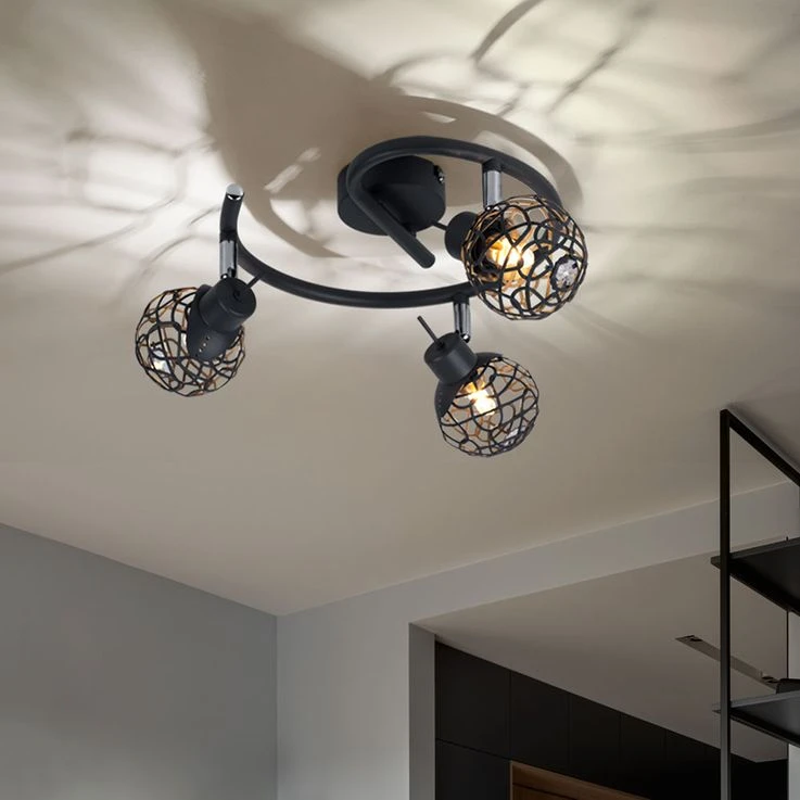 - MATERIAL/FARBE: Der graue Strahler besitzt drei technisch bewegbare Leuchtspots. Wenn man die Leuchte einschaltet, wirkt ein Kristall am Lampenschirm.
