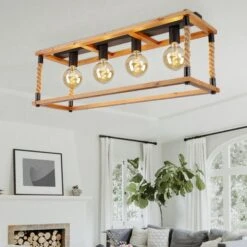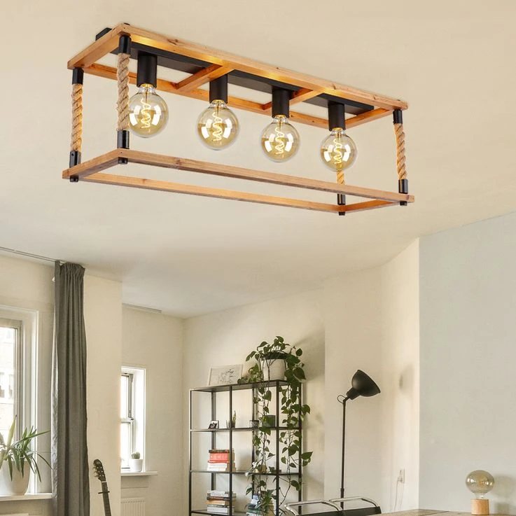- DESIGN: Das Retro und Vintage Design dieser Lampe zeichnet sich durch das Hanfseil in Kombination mit dem Holzgerüst aus, was sie zu einem absoluten Blickfang macht.