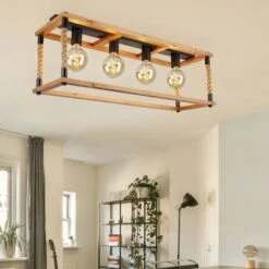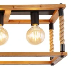 Deckenleuchte, Holz, Hanfseil, Naturfarben, Schwarz, L 80 Cm