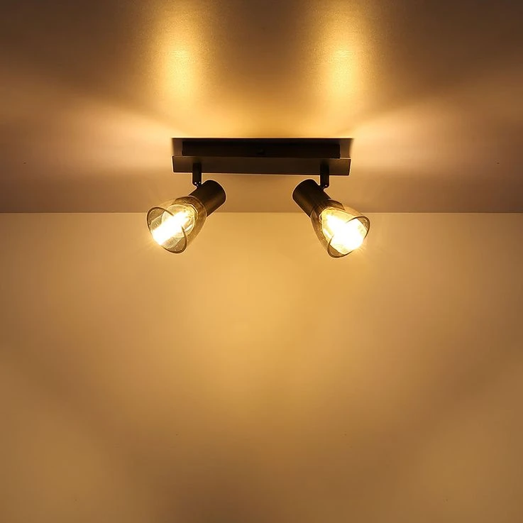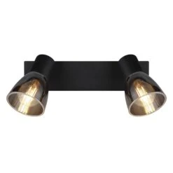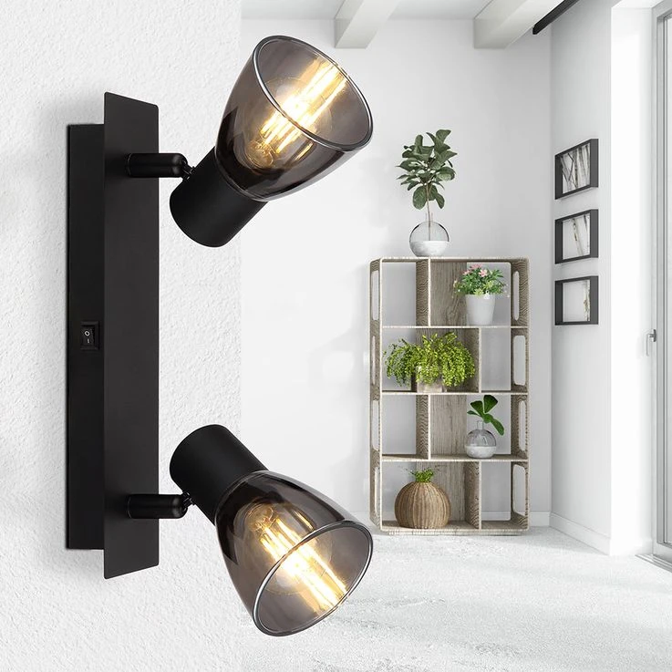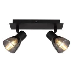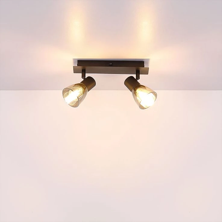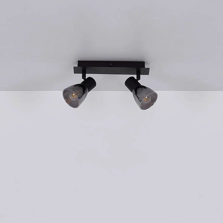 Dieser schöne Strahler der Claude Serie in schwarzen Metall begeistert durch tolles Design. An einer rechteckigen Deckenbefestigung (25x7cm) befinden sich zwei E14 Fassung mit jeweils einem schönen Glasschirm in Rauchfarben (Ø7cm). Geschaltet wird die Leuchte mittels ON/OFF Schalter. Die E14 Fassung überlässt Ihnen die Möglichkeit, bis zu einer maximalen Leistung von 40 Watt, selbst über Lichtfarbe und Helligkeit zu bestimmen. Mit weiteren Modellen dieser Serie können Sie Ihren Wohnbereich wundervoll ergänzen.