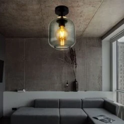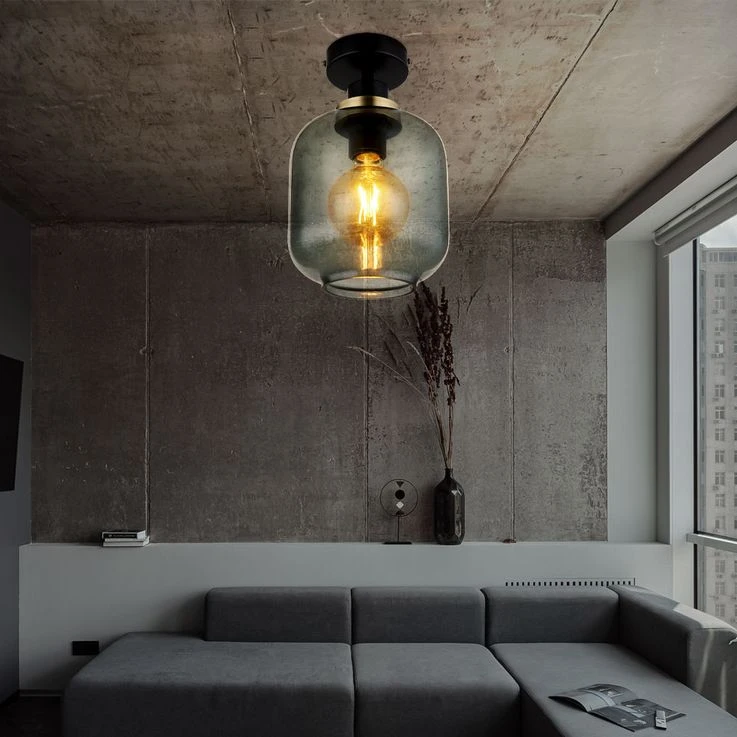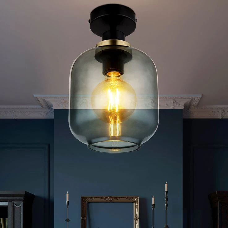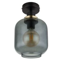 Deckenleuchte, Metall Schwarz, Glas Rauch, D 18 Cm
