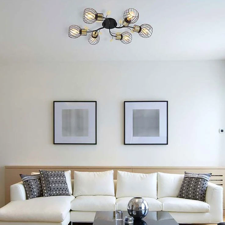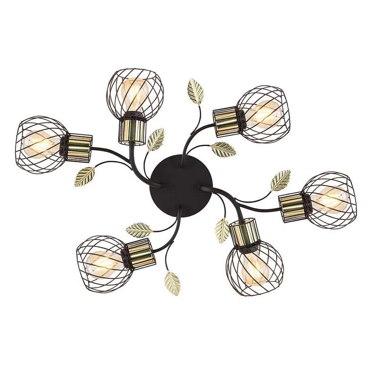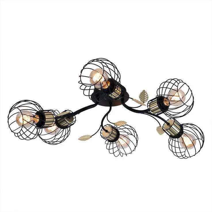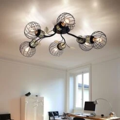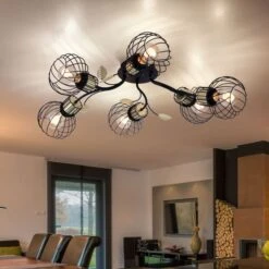 Deckenleuchte, Metallgeflecht, 6 Flammig, Schwarz, L 71 Cm