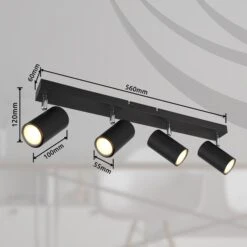 Deckenleuchte, Schwarz, Bewegliche Spots, L 56 Cm