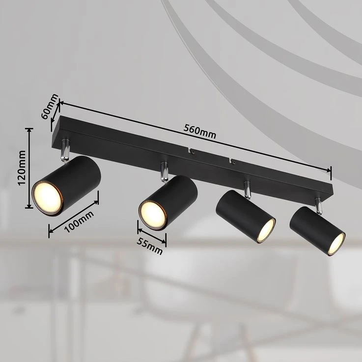 - LEUCHTMITTEL: Die vier GU10 Fassungen können mit Leuchtmitteln Ihrer Wahl mit je max. 35 Watt ausgestattet werden. Somit entscheiden Sie selbst über Lichtfarbe und Lichtstärke.