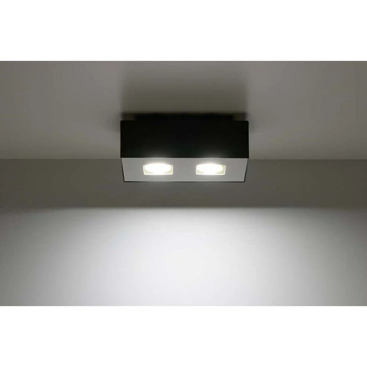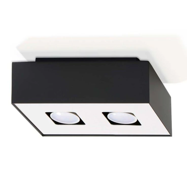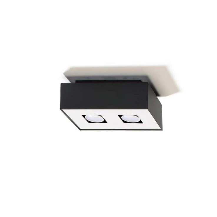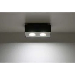 Deckenlampe, 2flammig, Metall Holz, Schwarz, Spots Beweglich