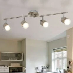 Verleihen Sie Ihrem Badezimmer mit diesem 4-flammigen verstellbaren Leistenstrahler eine elegante Note. In satiniertem Silber wirkt die Armatur glamourös. Die Verwendung von Milchglas lässt weiche Lichtstrahlen Ihr Badezimmer erhellen. Sie können auch die Trennleiste und die Lichter nach Belieben anpassen. Dieser Artikel hat eine Schutzart von IP44, was bedeutet, dass er vollständig spritzwassergeschützt und für die Verwendung in Badezimmern geeignet ist.