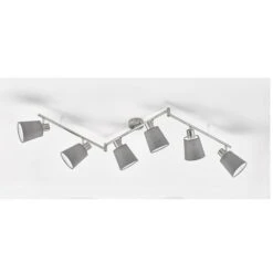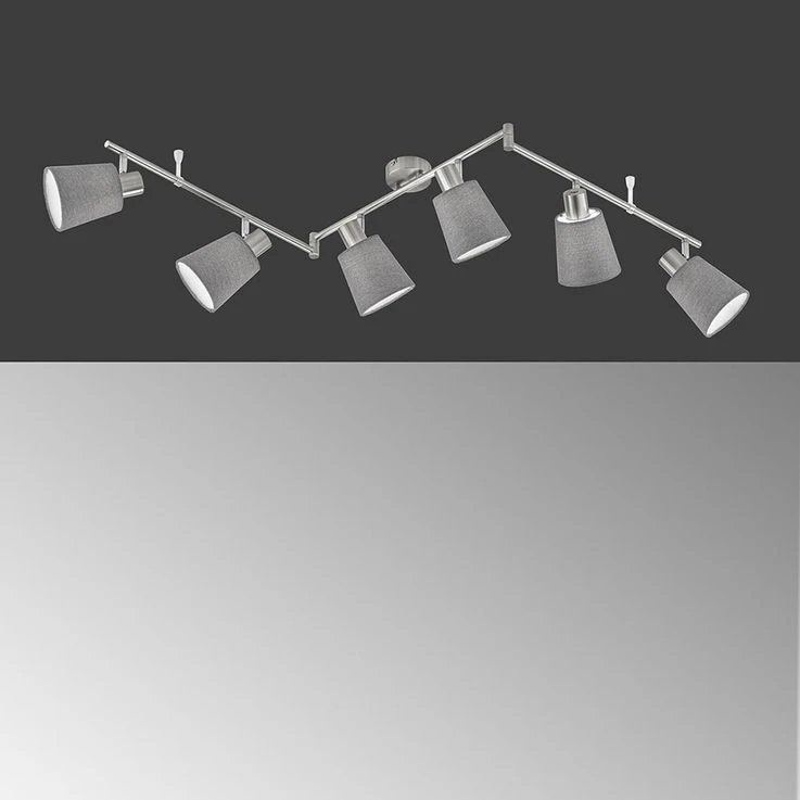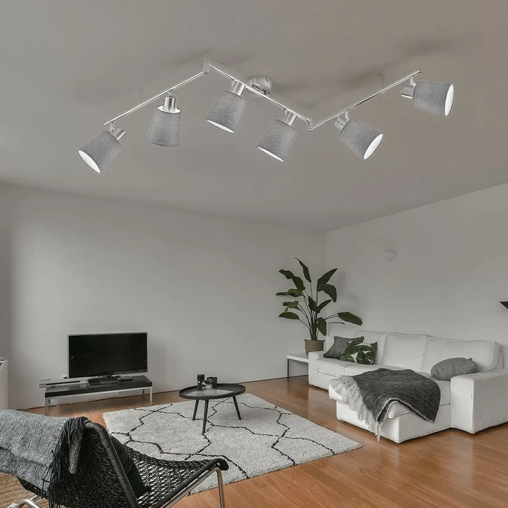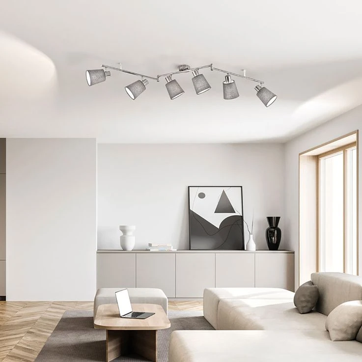 Deckenleuchte, Silber, Textil Grau, Spots Schwenkbar, L 145 Cm