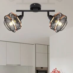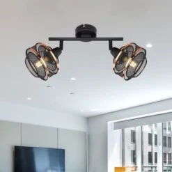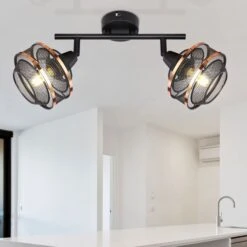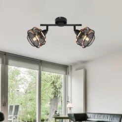Deckenleuchte, Spot Beweglich, Holz, Gitter Schwarz, L 29 Cm