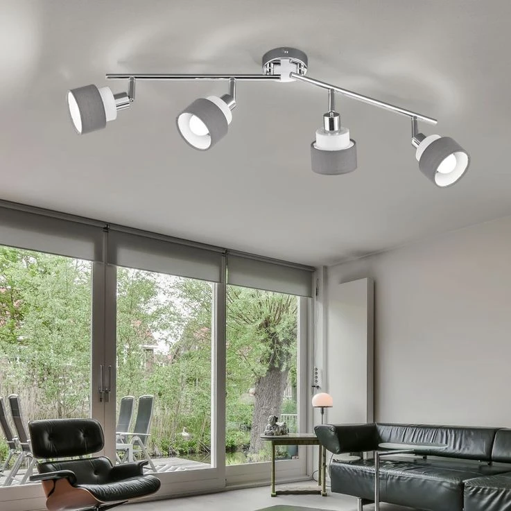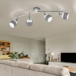 Deckenleuchte, Stahl, Chrom Grau, Spots Schwenkbar, L 85 Cm
