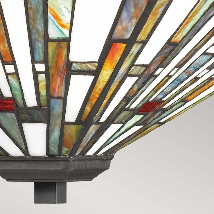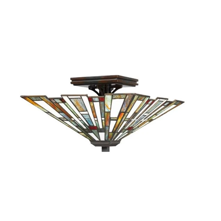 Das MAYBECK 2LT-Decken-Halbblüzlicht hat eine sich verjüngende, gestaffelte Kante, die die komplizierten Details des Glasstil-Tiffany-Style-Glass betont. Die Kunstglasfarbe in tiffany -Stil -Beleuchtungsprodukten variieren in der Farbe. Keine zwei Teile sind identisch.