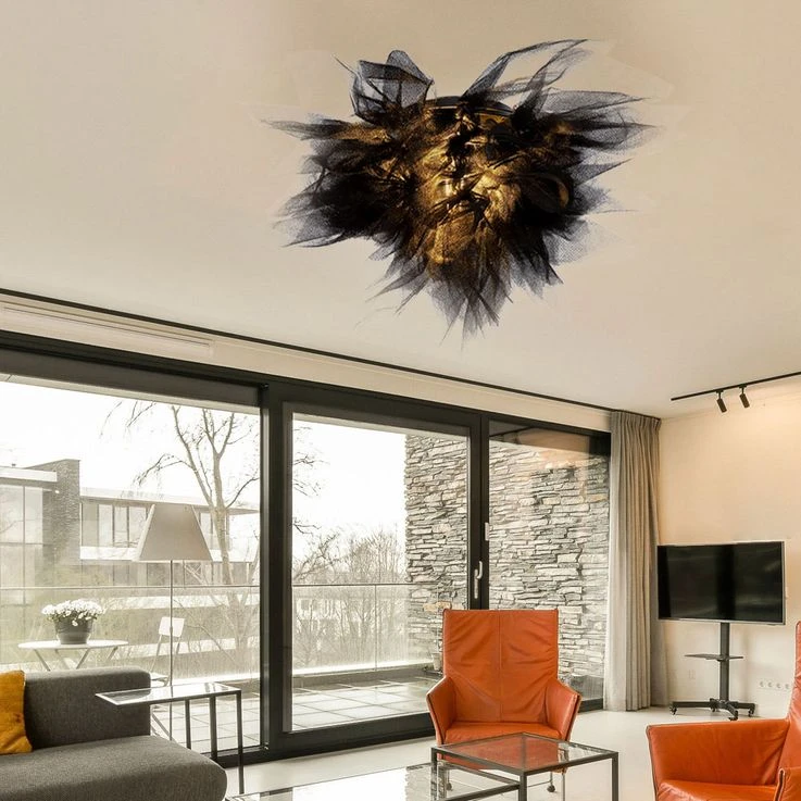 - DESIGN: Diese aufgeplusterte Deckenleuchte zieht alle Blicke auf sich. Durch die dunkle Farbgebung wird sie zu einem Akzent in jedem Wohnraum.