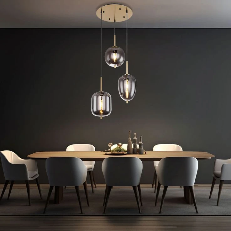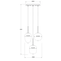 Deckenpendel, Rund, 3 Hänger, Glas, Messing, H 120cm