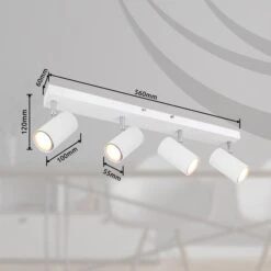 Deckenstrahler, Metall, Weiß, 4 Flammig