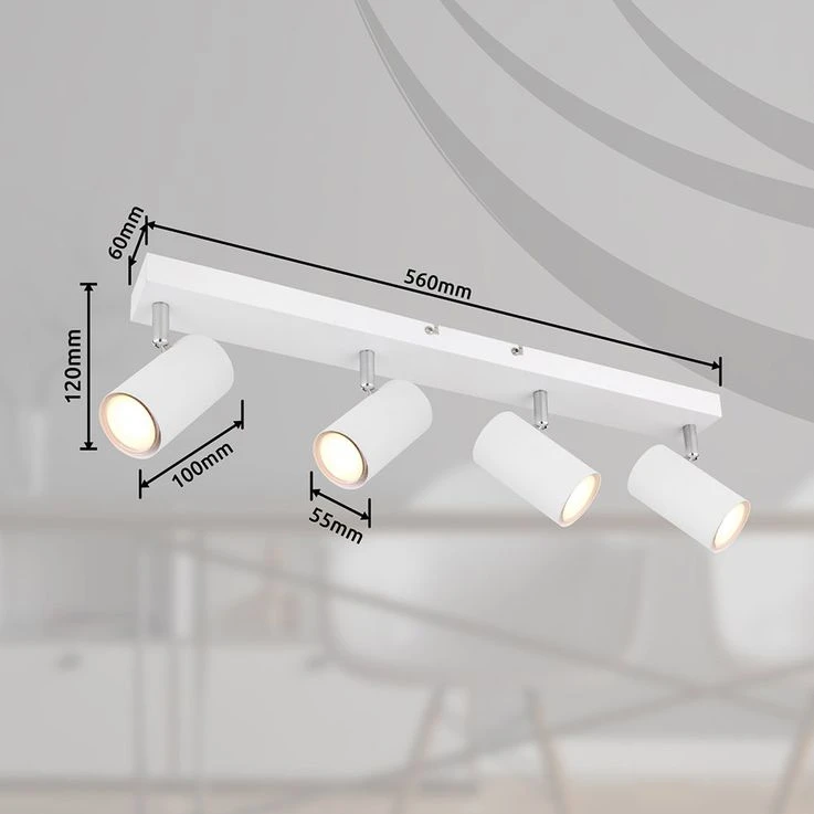 - LEUCHTMITTEL: Die vier GU10 Fassungen können mit Leuchtmitteln Ihrer Wahl mit je max. 35 Watt ausgestattet werden. Somit entscheiden Sie selbst über Lichtfarbe und Lichtstärke.