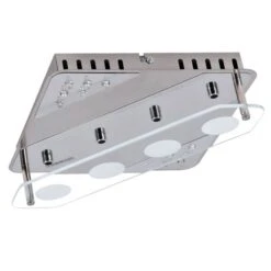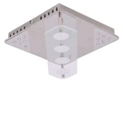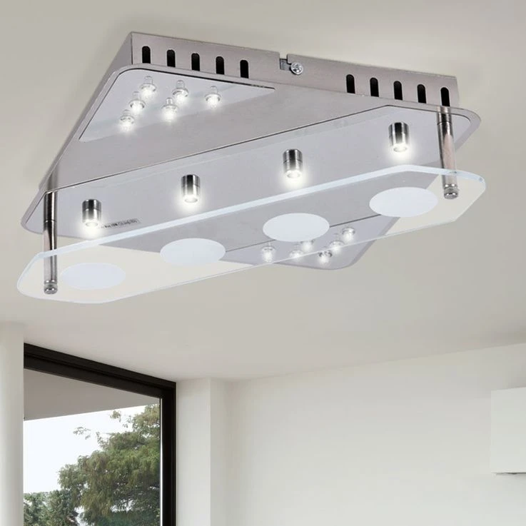 Diese quadratische Deckenlampe kann nicht nur durch den ersten Eindruck überzeugen, sondern ebenso bei genauerem Hinsehen. Insbesondere die Materialwahl kann sich sehen lassen. Gefertigt aus verchromt, satiniertem Metall setzt diese Deckenlampe auf Langlebigkeit. Das satiniert, klare Glas vollendet das Gesamtbild nahtlos.