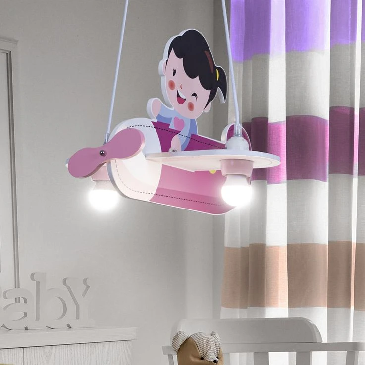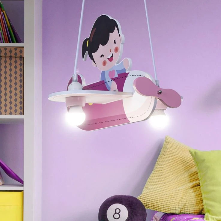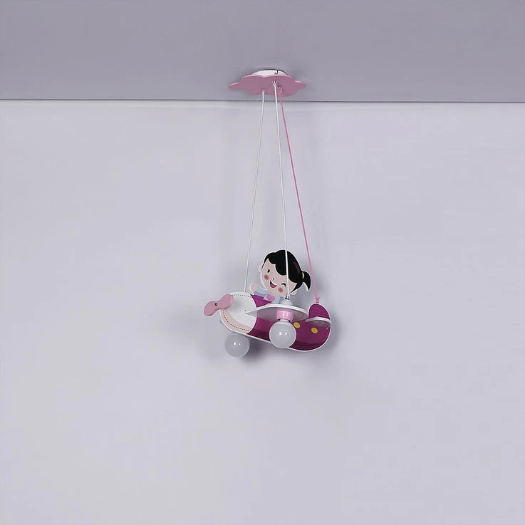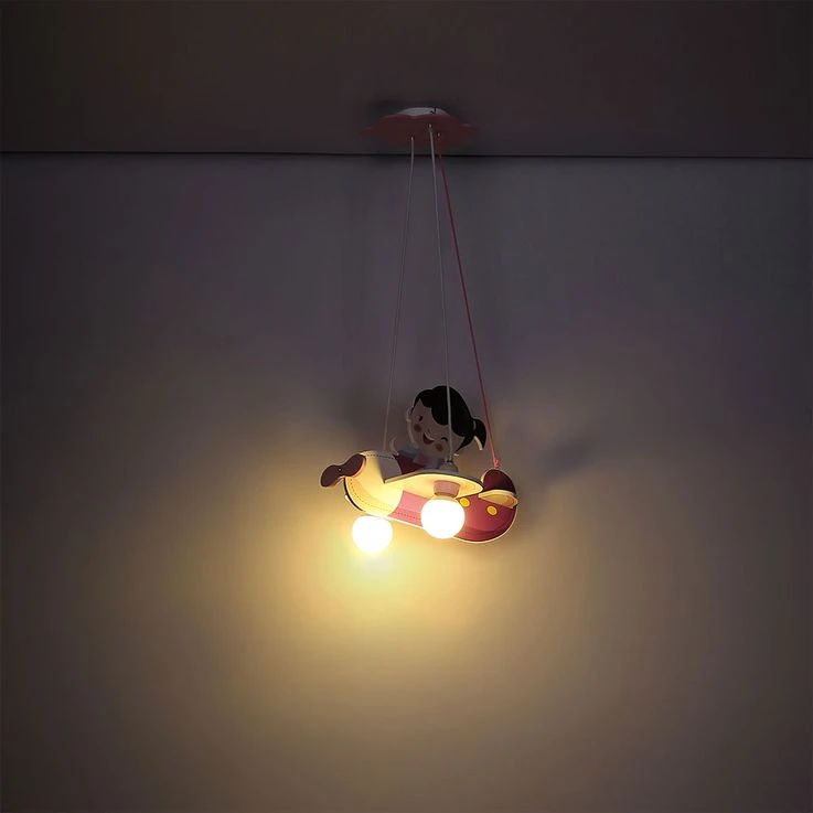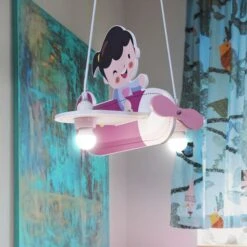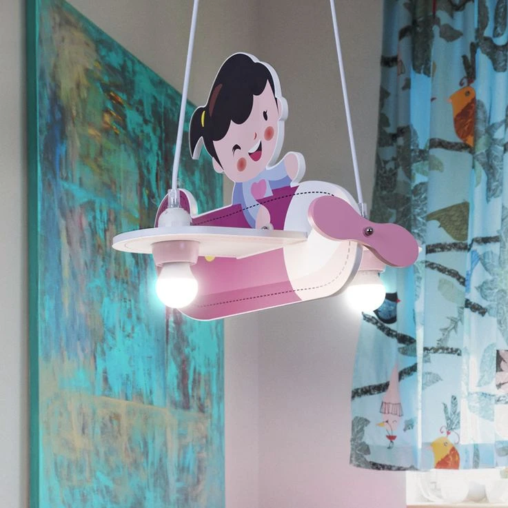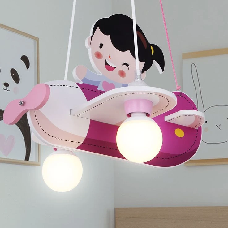 Eine ganz außergewöhnliche Leuchte ist die Hängelampe von KITA, denn sie kommt in Form eines Flugzeugs daher. In diesem rosaroten Flugzeug sitzt ein kleines Mädchen. So scheint sie mehr Spielzeug als Lampe zu sein und ist damit genau das richtige für das Zimmer einer kleinen Pilotin.