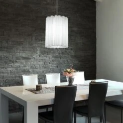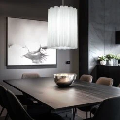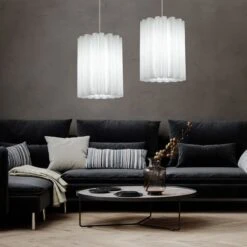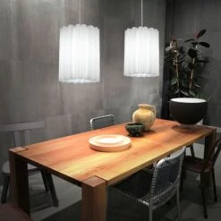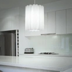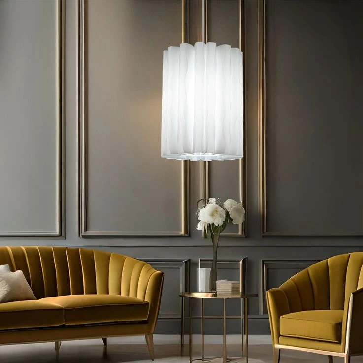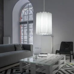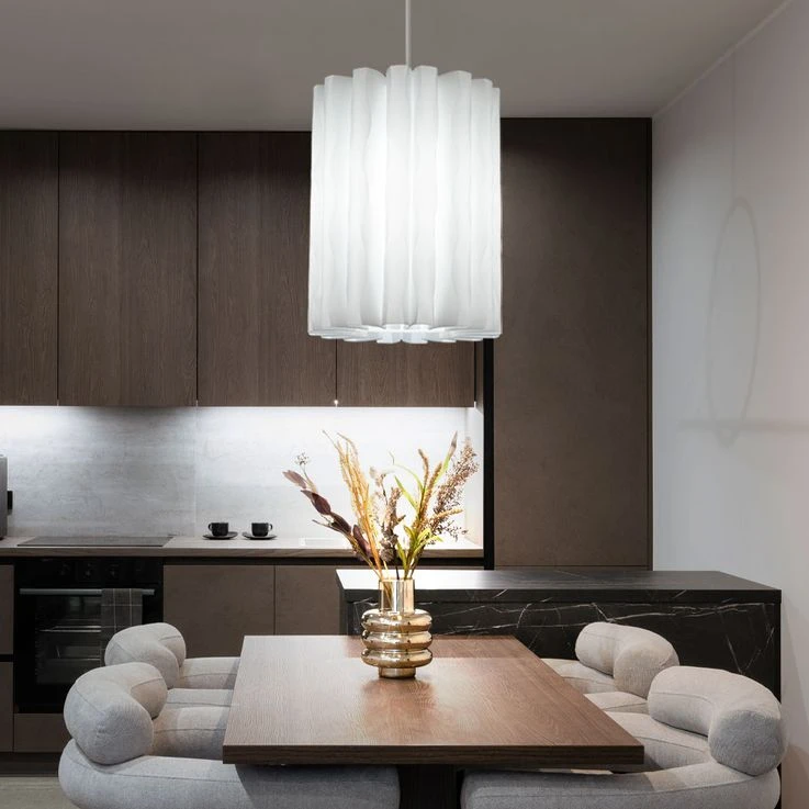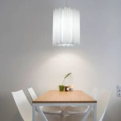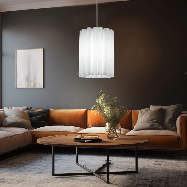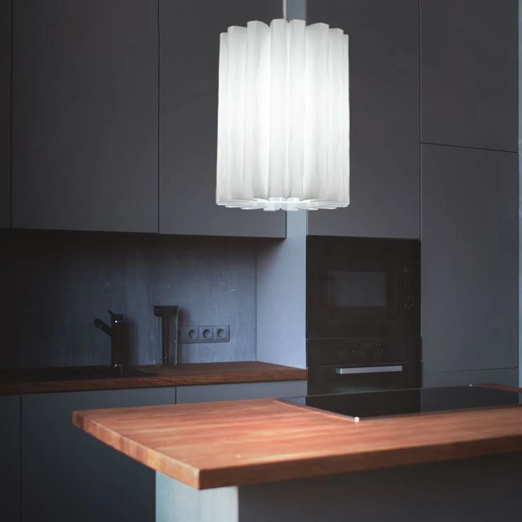 - DESIGN: Diese schöne und stilvolle Pendelleuchte überzeugt mit ihrem weißen gewellten Lampenschirm, welcher sie zu einem garantierten Hingucker macht.