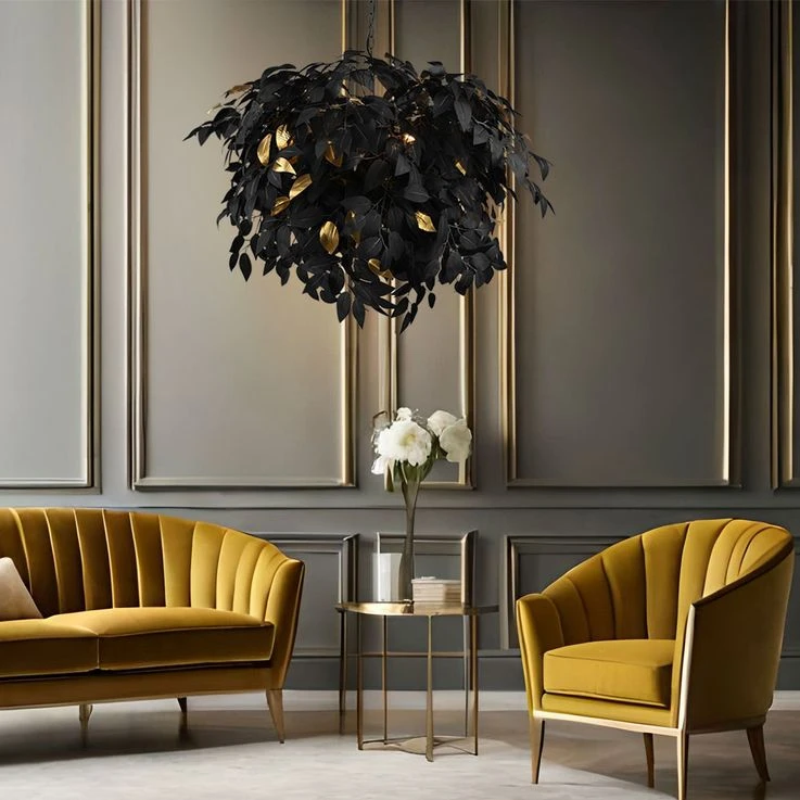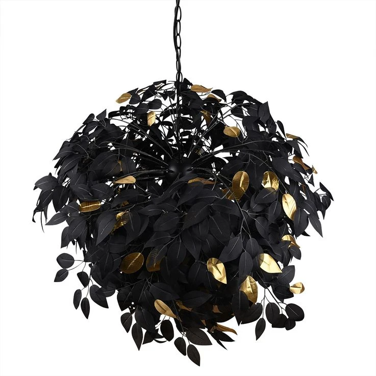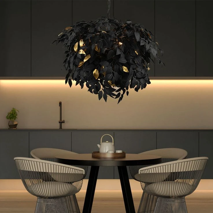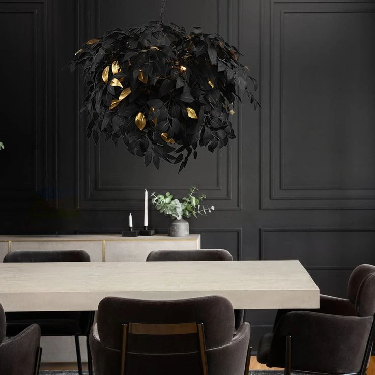 - DESIGN: Elegant – Das beschreibt diese Leuchte am besten. Die schwarzen Blätter ziehen alle Blicke auf sich und die goldenen Akzente verleihen ihr das gewisse Etwas.