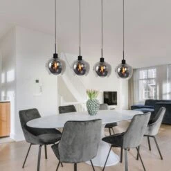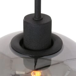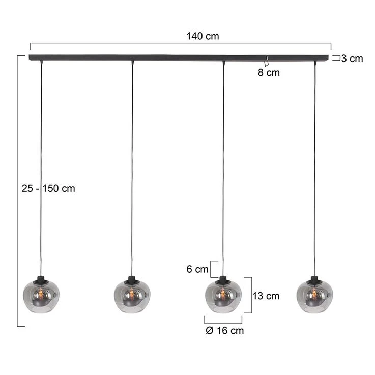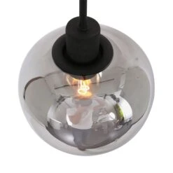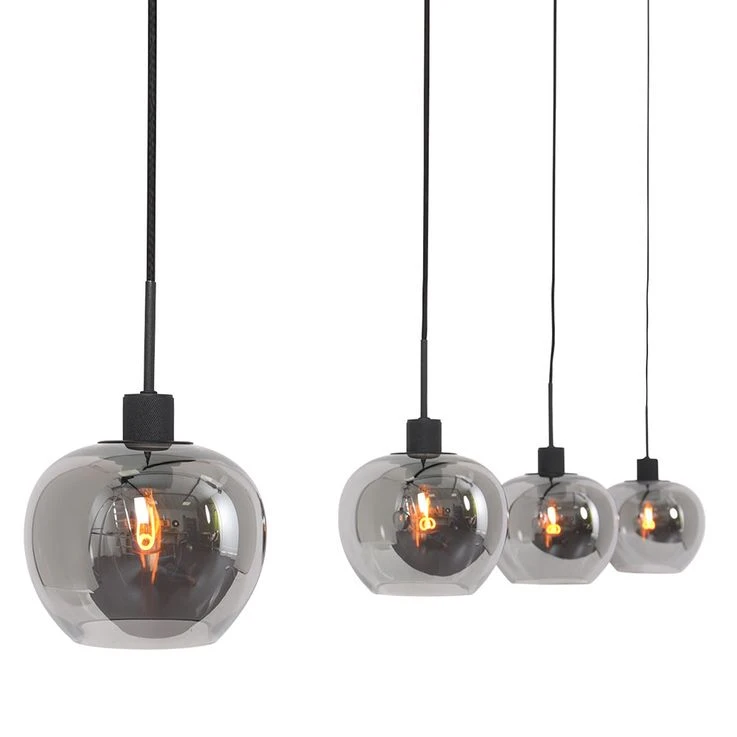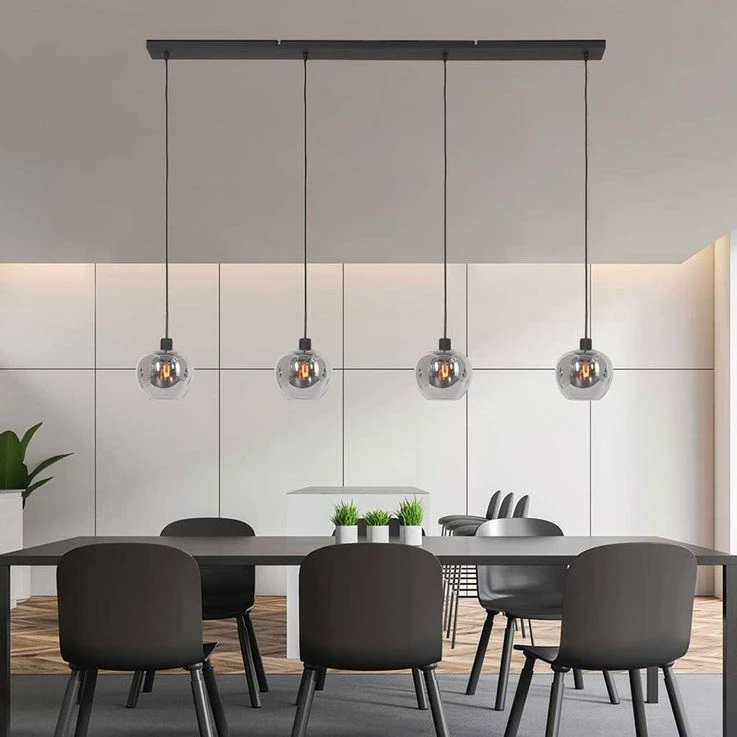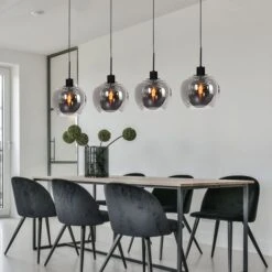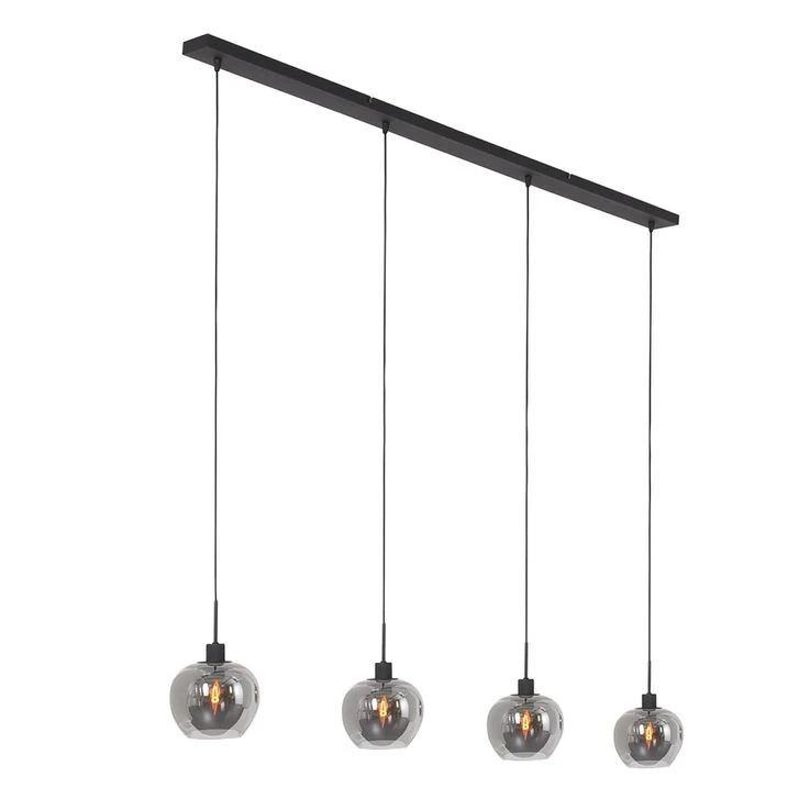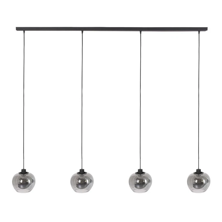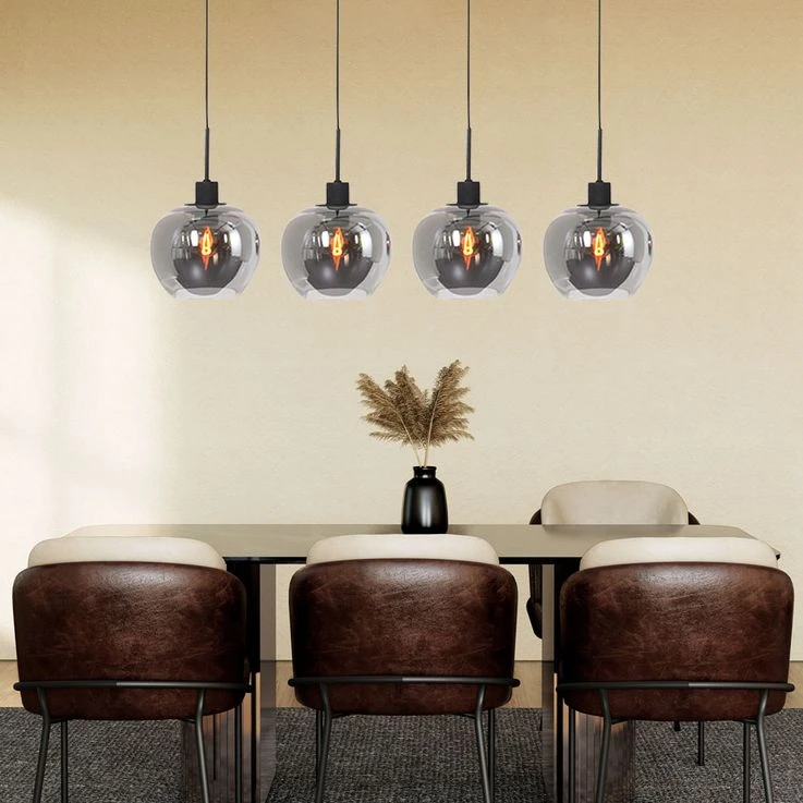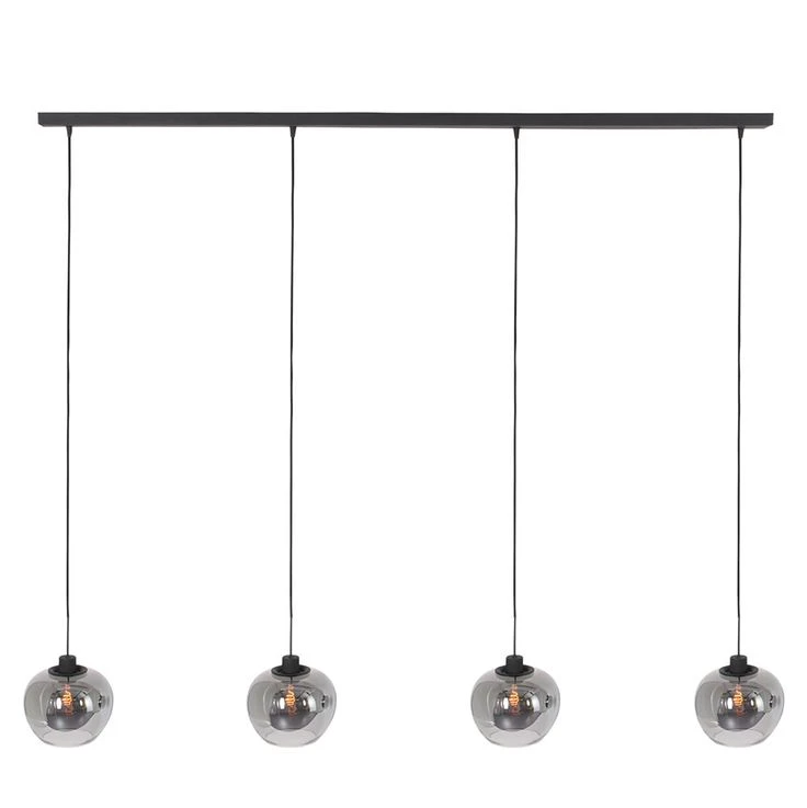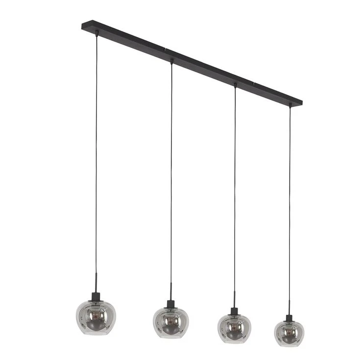 Hängeleuchte, 4-Flammig, Rauchglas, Schwarz, L 140 Cm