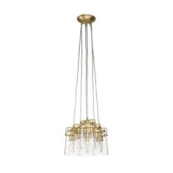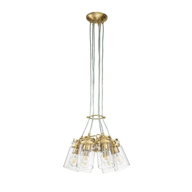 Der Vintage -Stil der Brinley -Kollektion verleiht der Vertrautheit und dem Komfort von Konservengläser eine wunderschön moderne Behandlung. Der Brinley 6 LT -Cluster -Anhänger ist in gebürstetem Messing fertiggestellt und verfügt über klare Glasfarben, die bei Bedarf zusammengeklemmt werden können.