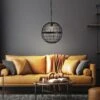 Hängeleuchte, Goldfarben, Käfig Aus Metallgitter, Holz, H 150 Cm
