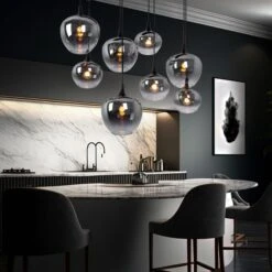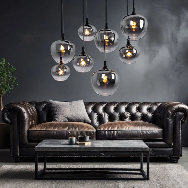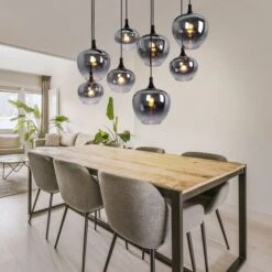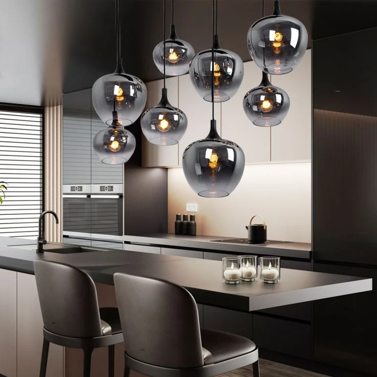- DESIGN: Diese Leuchte ist ein echter Hingucker. Die rauchfarbenen, gläsernen Lampenschirme verleihen der Leuchte das gewisse Etwas.