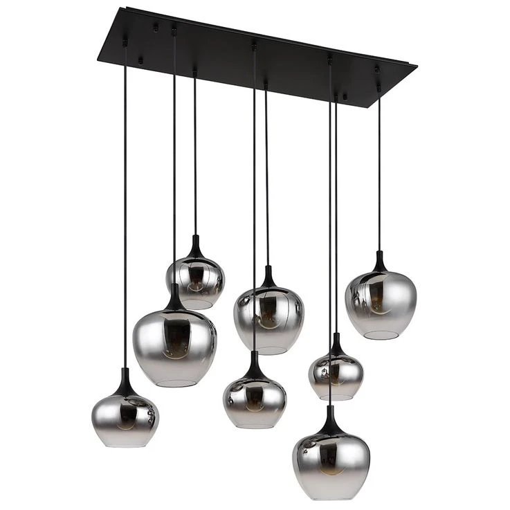 - MATERIAL/FARBE: Diese aus schwarzem Metall gefertigte Innenleuchte ist mit acht rauchfarbenen Lampenschirmen aus Glas versehen.