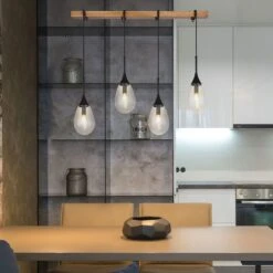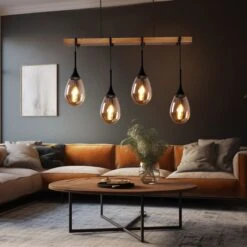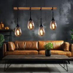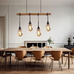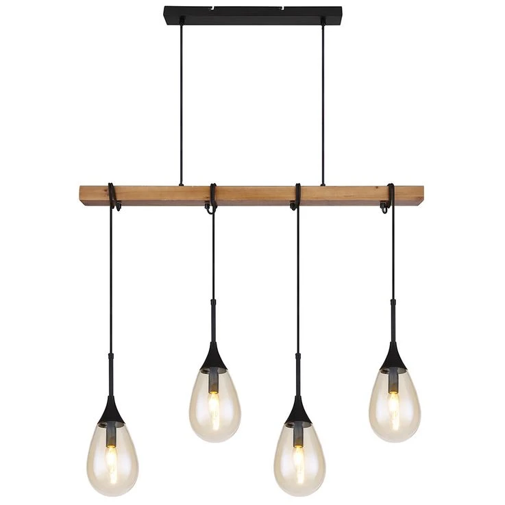 Hängeleuchte, Holz, Metall, L 92 Cm, 4-Flammig