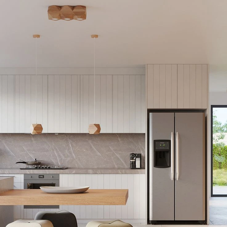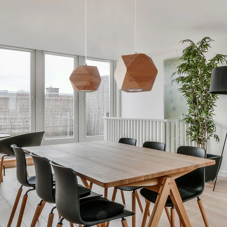 Die Leuchte ist aus Holz gefertigt und verfügt über eine schöne natürliche Färbung. Der warme Farbton des Holzes verleiht selbst den strengsten modernen Innenräumen eine gemütliche Note. Er passt auch gut zum minimalistischen skandinavischen Design. Die besonders schöne eckige Form des Lampenschirm macht sie zu einem garantierten Hingucker.