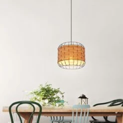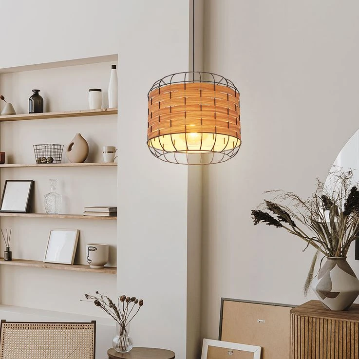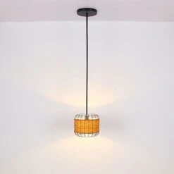 - MATERIAL/FARBE: Die E27 Fassung wird von einem formschönen runden Metallkäfig-Schirm mit Kunststoffeinlagen (Ø35cm) umhüllt und vergibt somit der Leuchte den richtigen Touch.
