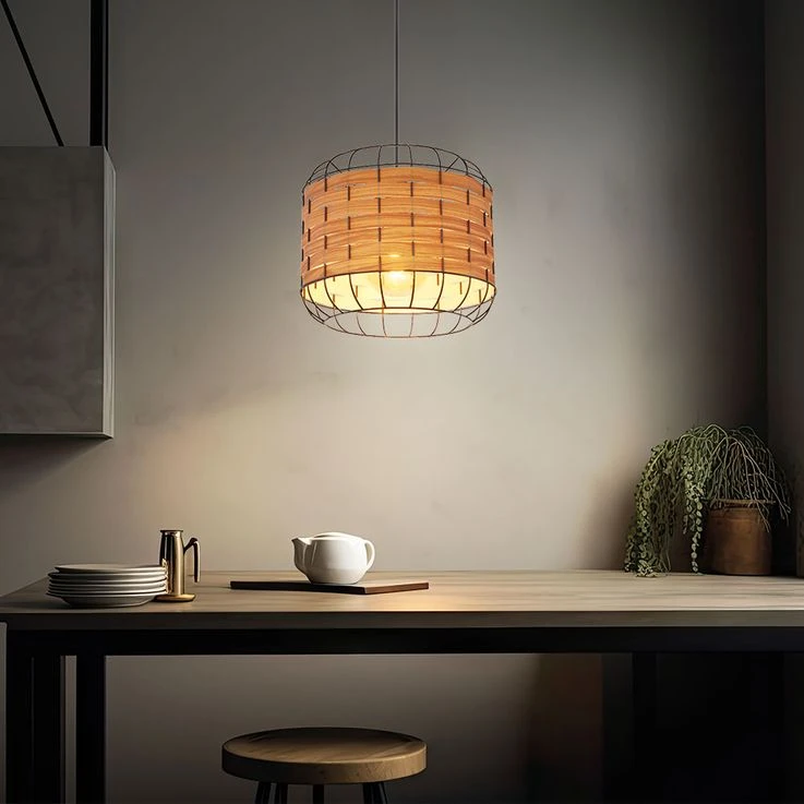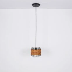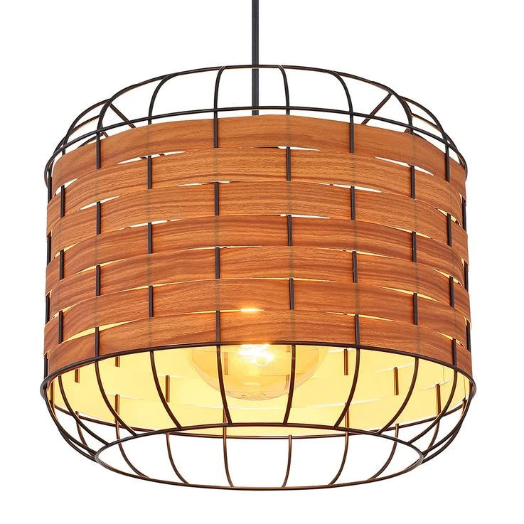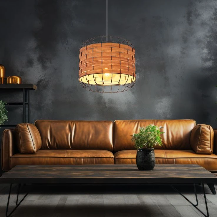 Hängeleuchte, Käfig-Design, Holzoptik Braun, H 120cm