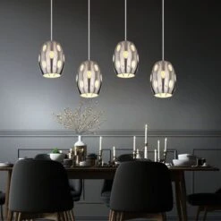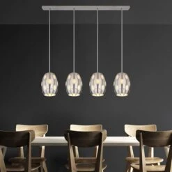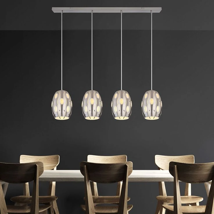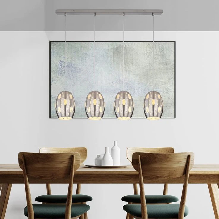 Mit dem farblich abgestimmten Sockel besitzt diese Lampe eine Gesamtlänge von 120 cm. Die Leuchte verfügt vier E27 Fassungen, welche mit einem beliebigen Leuchtmittel ausgestattet werden kann (max. 4x40W). LED-Leuchtmittel eignen sich besonders gut für den Einsatz in offenen Leuchten, ohne eine Blendung zu erzeugen. Stromersparnis und Langlebigkeit ist ein weiterer positiver Effekt und somit Wohlfühlstimmung garantiert.