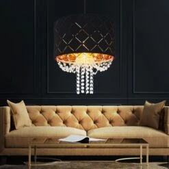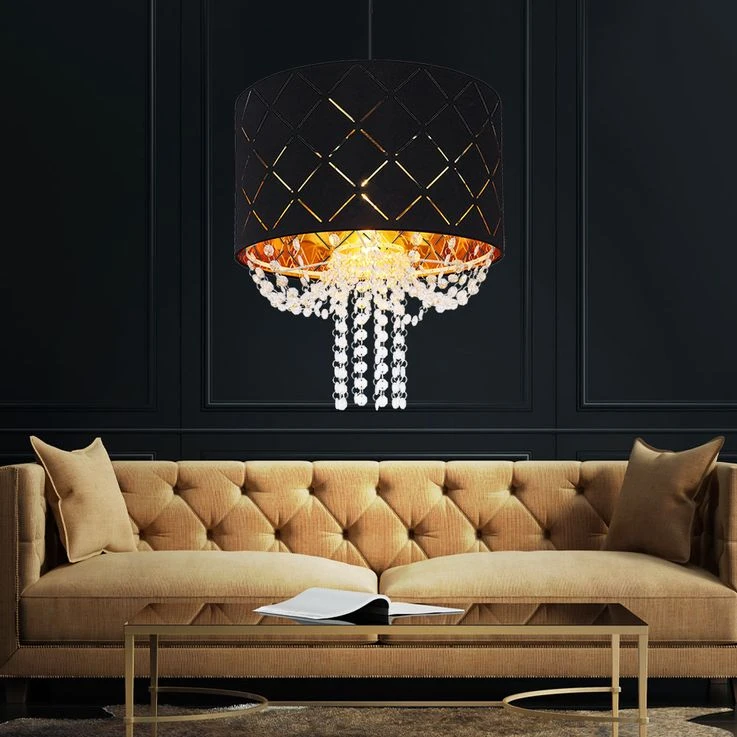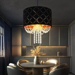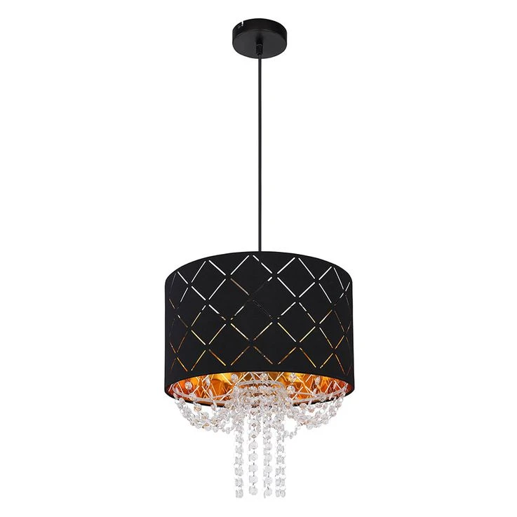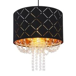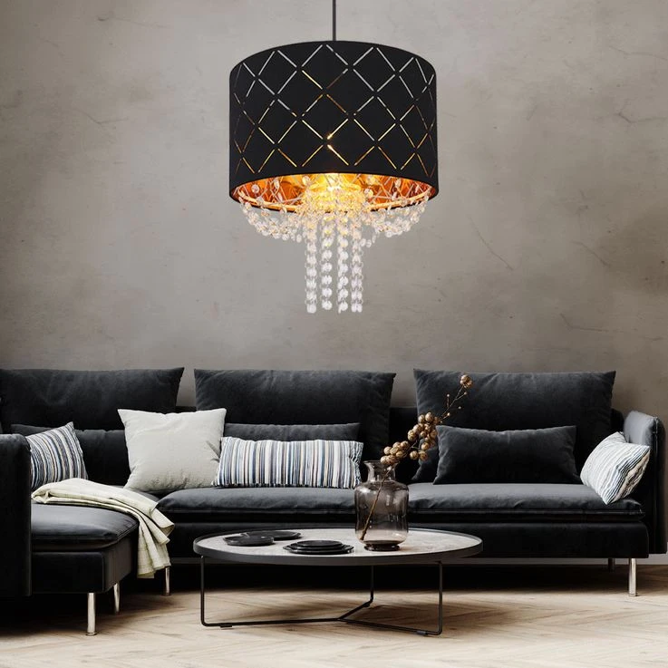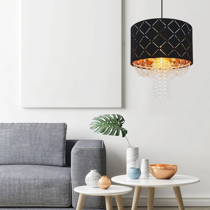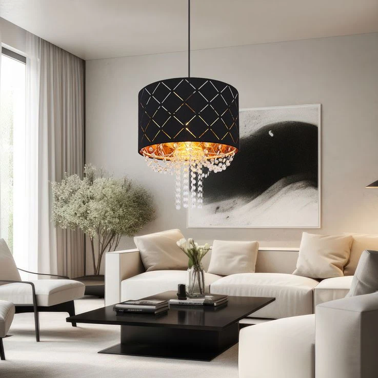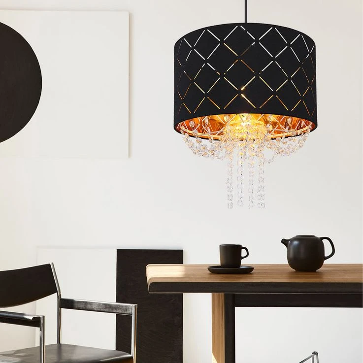 Bei der Anfertigung dieser Pendellampe, wurden nickelmatte und schwarze Farbtöne gewählt, der Schirm wurde mit Dekorstanzungen verziert, welche dieser Lampe eine einzigartige Optik verleihen, was sie somit definitiv zu einem Blickfang macht.