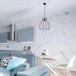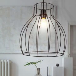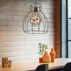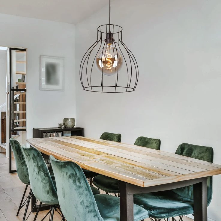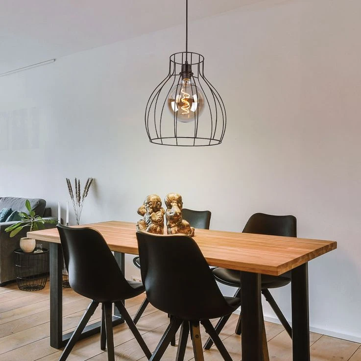 Hängeleuchte, Lampenschirm Käfig, Schwarz, MINA